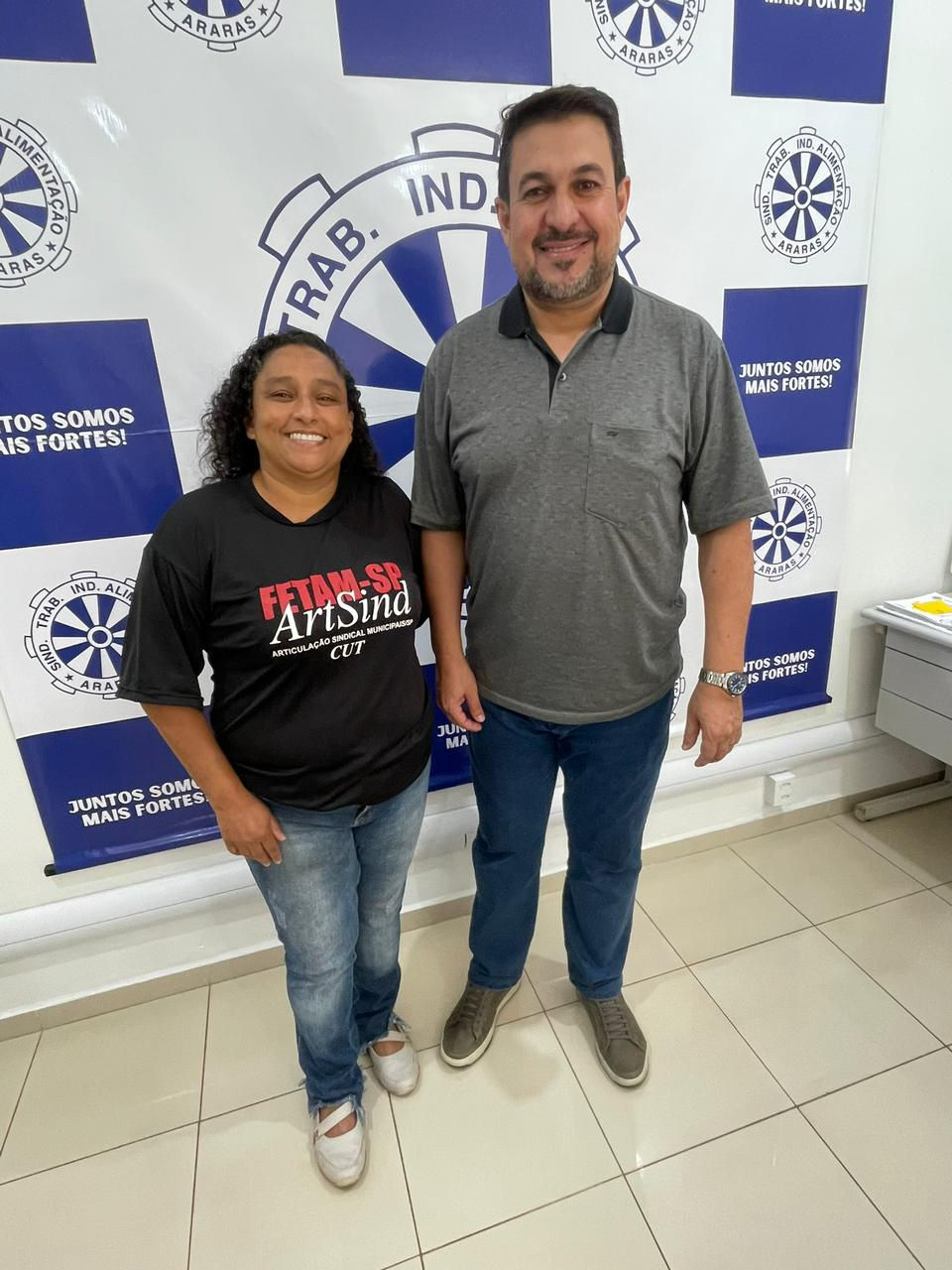 A presidente eleita do SindSepa, Eliana Lopes, reuniu-se com o vice-presidente do Sindicato dos Trabalhadores das Indústrias da Alimentação de Araras e Leme, Daniel Sentinella, para alinhar pautas e compartilhar perspectivas sobre o cenário atual dos trabalhadores de Araras e região.